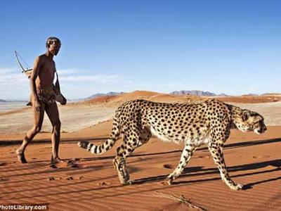 纳米比亚游牧部落男子将3头非洲猎豹驯化