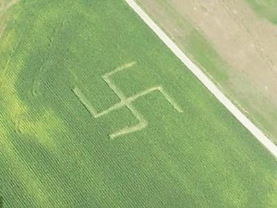 德国玉米田出现巨大纳粹标志 希特勒和纳粹党旗 据《每日邮报》报道,德国...