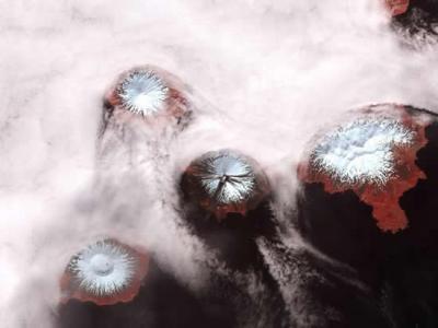 美国宇航局于2010年8月发布的照片显示了,Terra卫星携带的先进星载热辐射与反射辐...
