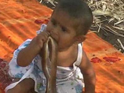 印度半岁女婴将大蟒蛇当玩具 印度半岁女婴将大蟒蛇当玩具 印度半岁女婴将大...