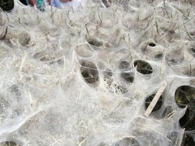 欧洲上千万只毛毛虫吐丝编织怪异网圈