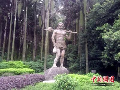 广西柳州白莲洞的柳江人雕塑 广西柳州白莲洞洞穴科学博物馆馆长李刚9日向中...
