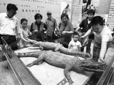 两个鳄鱼标本让众多市民驻足 再过几天就是“六一”儿童节了,家长们一定希望...
