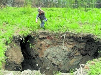 宜宾市长宁县硐底镇的巨坑 5月3日凌晨,随着“轰”的一声巨响,宜宾市长宁县硐底...