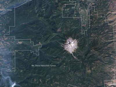 美国胡德山国家森林公园卫星照片 据美国宇航局官网报道,胡德山海拔高度为3...