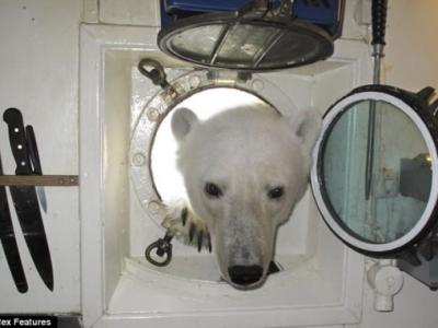 有人在家吗?北极熊将头伸进了厨房间舷窗 北极熊是世界上第二大的陆地食肉动物...