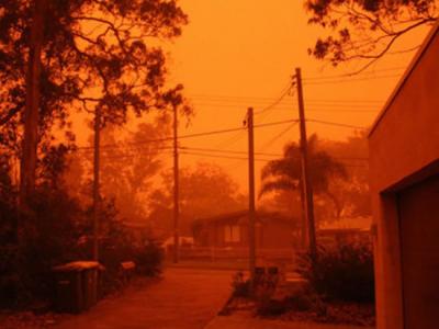 9月23早晨,一场超强沙尘暴突袭澳大利亚海滨城市悉尼 城市天空染成橘红色,能...