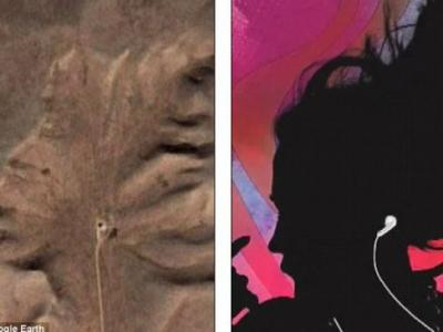 左图展示了位于加拿大艾伯塔省的山脉,它们组成的图案是否像一个戴头饰的加拿大土...