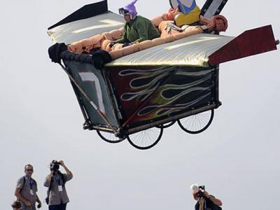 9月27日,法国马赛趣味飞行器大赛举行。比赛规则简单,谁能在落水之前飞得...