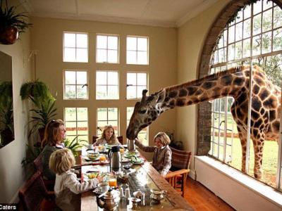 稀有的罗斯切尔德长颈鹿与麦基和坦雅夫妇一家共进早餐 据《...