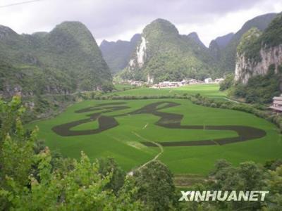贵州安顺龙宫景区水稻套种形成汉字“龙” 贵州安顺龙宫景区是一个国家5A级风景区...