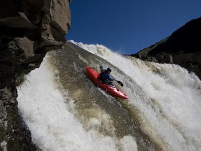 疯狂的壮举:泰勒-布拉特冒着生命危险从华盛顿州东部一条高约60米的瀑布激流冲下...