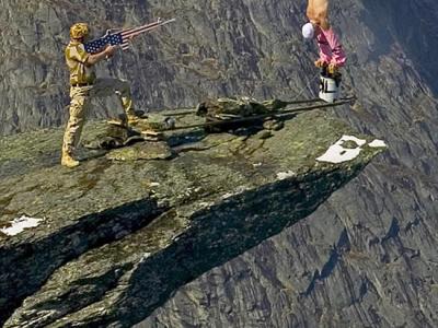 挪威艺术家悬崖边表演人体平衡绝技
