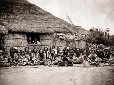这张1880年代的照片中,一群日本原住民爱奴人席地而坐。语言学...