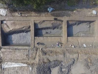 古城钟家港河道(GH02)南段考古发掘情况。良渚古城遗址。良渚...