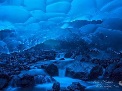 美国阿拉斯加州门登霍尔冰河冰洞内部美照