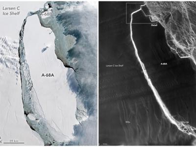 冰山于本年9月的时候(图左)和7月时(图右)的比较...