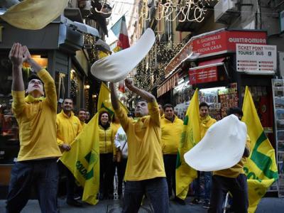 那不勒斯一批厨师齐齐在街上制饼庆祝。那不勒斯手抛薄饼新入选...