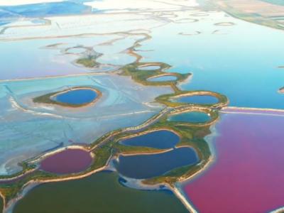 盐湖犹如色彩斑斓的调色碟。貌似颈链的盐湖小池。网...