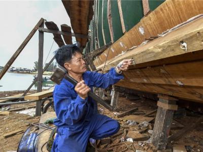 张明传承的造船手艺已有八百多年历史。海南临高县明...