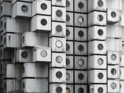 中银胶囊塔由140个可拆卸重组的胶囊住宅构成。此为...