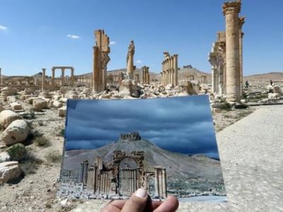 巴尔米拉遭蹂躏得面目全非。古城的前后对比,叫人扼...