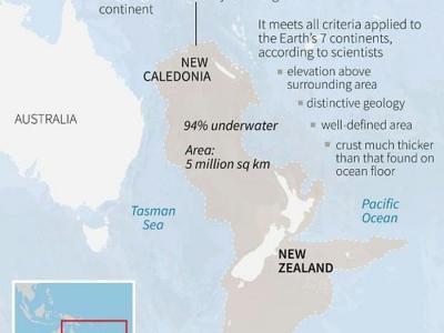 澳大利亚东部发现世界第八洲Zealandia:面积490万平...