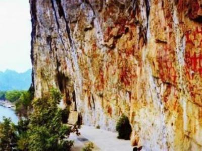 广西左江花山岩画位于广西崇左市。 岩画历几千年风雨的冲刷而不褪色。 岩画...