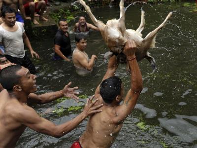 动物权益人士谴责尼泊尔举行德坡卡锐节庆祝活动,因为在仪式的高潮部分,一只小母...