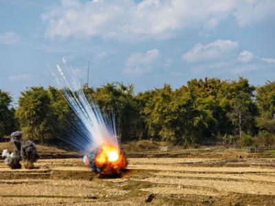 图中的弹药是越战中留下的一部分未爆弹,在2012年被销毁以恢复一片田地的安全。 ...