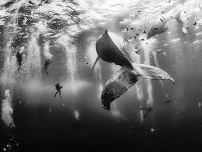 第27届国家地理旅行者摄影大赛一等奖:这头座头鲸及其刚出生的孩子正在墨西哥雷维...