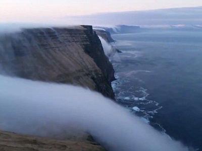 冰岛布雷扎峡湾罕见自然奇观:山顶浓雾如瀑布一般流下海崖 (蜘蛛网报道)...