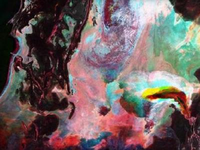 卫星照片显示咸海干涸的图景如同一幅色彩艳丽的抽象画 (蜘蛛网报道)据中新网:...