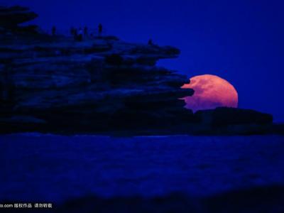 澳大利亚悉尼邦迪海滩升起超级月亮