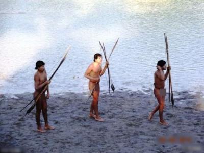 秘鲁土著手持弓箭 (蜘蛛网报道)巴西全国印第安基金会周三发放片段,指一批原本...
