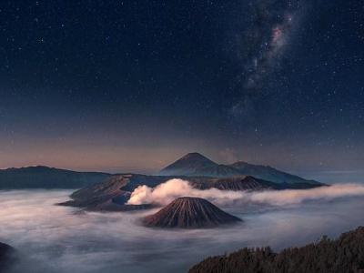 印尼婆罗摩火山的美丽景色 (蜘蛛网报道)印尼婆罗摩火山海拔7500英尺,...