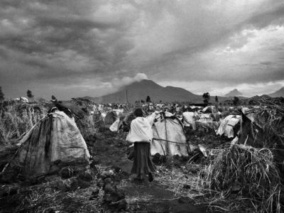 流离失所的难民逃离刚果卡鲁巴和穆夏克村落的战事后,在哥马扎营。这张照片在电影...