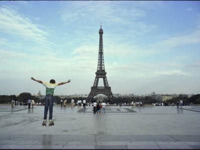 一名溜冰者飞跃过巴黎特罗卡迪罗广场的地面。照片摄于1985年6月。 巴黎的代表...