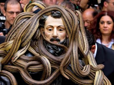 意大利中部小镇科库洛迎来一年一度的蟒蛇节