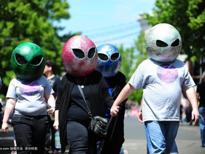 美国俄勒冈州第15届麦克梅南明UFO节大游行纪念1950年拍到盘旋的飞碟 (...