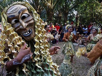 玛美里族舞者穿戴着传统服饰庆祝“祖先日”,传说节日日期每年都在变化,村里的长...