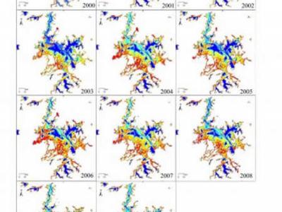 图例中数字表示每年被水覆盖的次数,研究是利用中等分辨率成像光谱仪(MODIS)8天合...