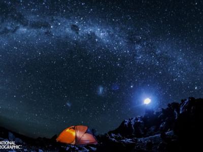 智利山地上空闪耀的银河 (蜘蛛网)这张照片拍摄于2月11日,可以看到智利山地上...