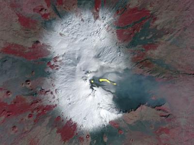 美国宇航局“大地”卫星拍摄的意大利西西里岛埃特纳火山 (蜘蛛网)这张照片是在...