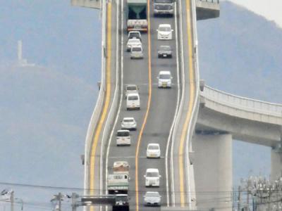 日本江岛大桥因坡度过于陡峭成旅游新热点
