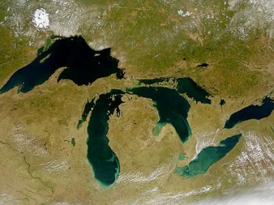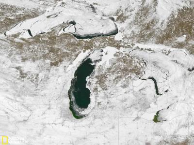 航拍照片显示北美五大湖有80.3%的面积几乎全部结冰 (蜘蛛网)据环球网(郭...