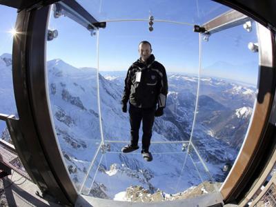 法国阿尔卑斯山4000米高山顶上的玻璃悬空