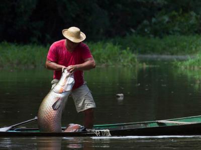 巴西索利蒙伊斯河渔民捕杀巨滑舌鱼