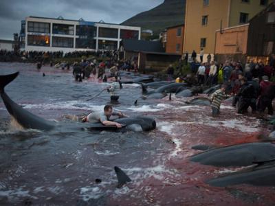 丹麦法罗兰群岛举行一年一度的屠杀领航鲸