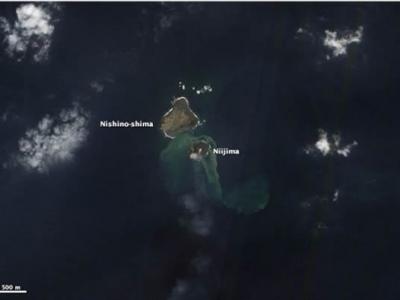 2013年12月8日美国宇航局地球观测系统卫星拍摄的图像,可以清楚的看到新生的小岛...